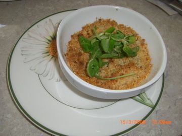 Le crumble : 100 g de farine, 50 g de chapelure, 100 g de parmesan, 100 g de beurre demi-sel.