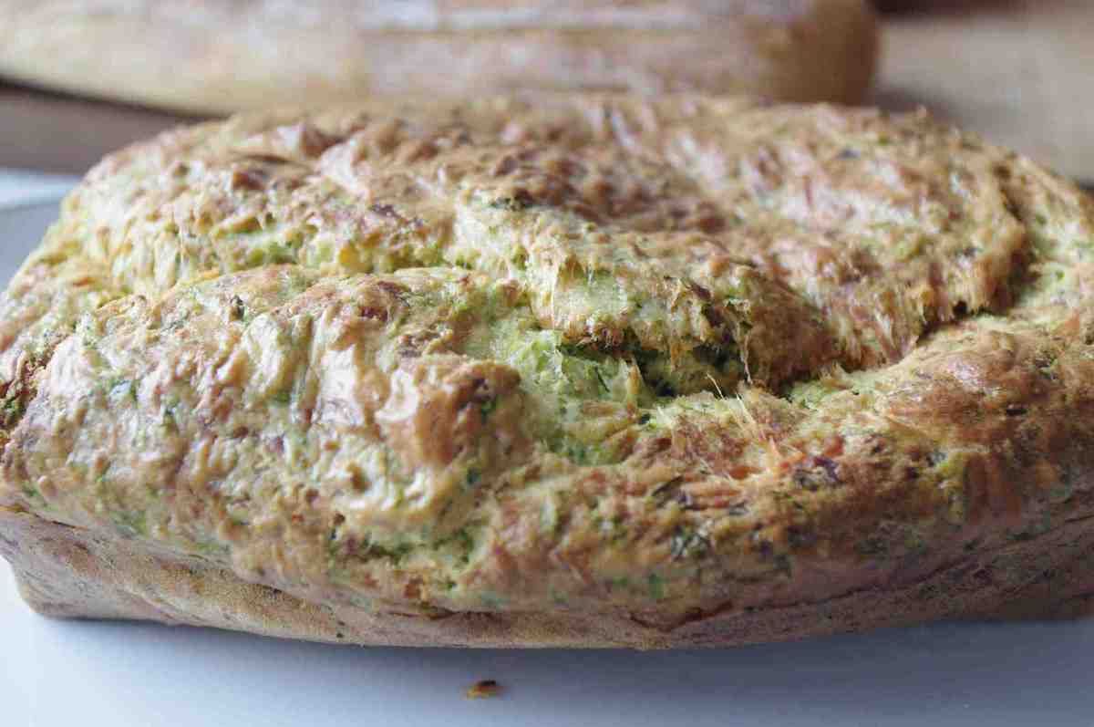 200 g de farine / 1 sachet de levure / 3 oeufs / 100 g de gruyère râpé /5 cl d'huile d'olive / 5 cl d'huile végétale / 10 cl de lait / 20 g de beurre / 250 g de courgettes / 100 g de parmesan / 1 poignée de basilic haché / 1 poignée de menthe hachée / Sel et poivre.