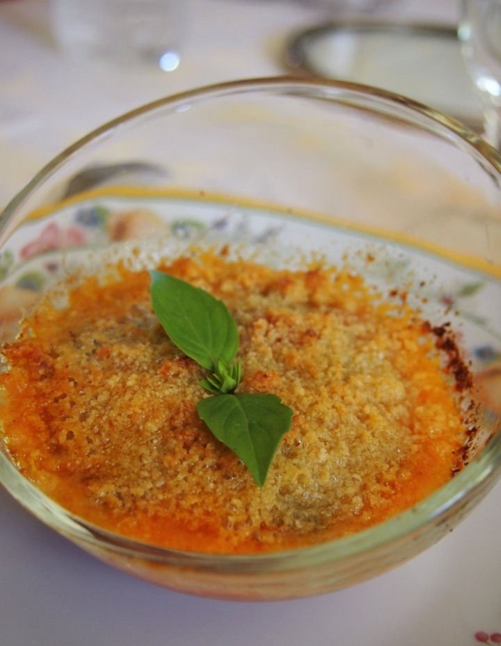 Crumble : 100 g de farine / 50 g de chapelure / 100 g de parmesan / 100 g de beurre demi-sel.