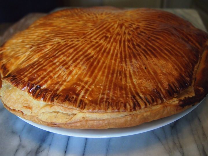 Galette frangipane : 2 pâtes feuilletées / 140 g de poudre d'amandes /100 g de sucre en poudre / 2 oeufs + 1 jaune / 75 g de beurre mou / 1 fève.