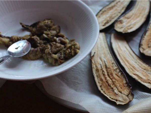 Retirer les aubergines du four, les laisser refroidir et évider-les.